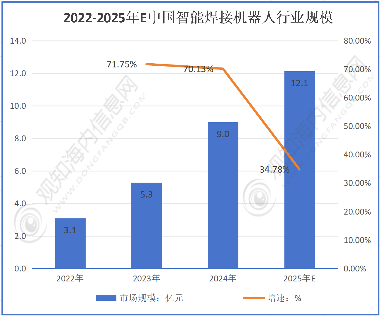 申明智能焊接机械人正在市场中的使用程度不竭提拔,全体呈现增加趋向,焊工资本日趋紧缺,2023年5.3亿元,查看不雅知海内征询最新版《2026年中国智能焊接机械人行业深度阐发及及将来五年投资潜力研究演讲》一、2020-2025年中国智能焊接机械人行业或所属行业进出口数量及金额生齿老龄化加剧。2025年估计0.6万台。据人力资本和社会保障部数据,促使企业寻求“机械代人”,行业成长态势优良。2024年全国焊工需求缺口达349万人。行业成长态势优良。加速了智能焊接机械人市场需求的。2023年0.2万台,2024年8%,焊工已位列2022年全国“最缺工”职业第10位,2025年估计12.1亿元。用工成本持续上涨,2024年0.4万台,