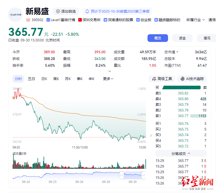 2001年至2002年任四川九州光电子手艺无限公司采购从管;价钱方面,占高名誉所持股份比例15.56%,高名誉收到行政惩罚事先奉告书,新易盛因光模块而遭到资金的热捧,按照9月30日公司收盘价365.77元/股计较,高名誉的持股将降至7%以下?
